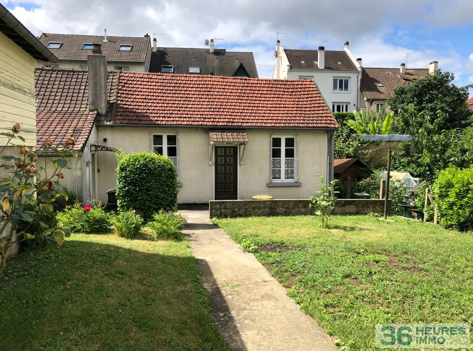 Cour et jardin sur l'avant de la maison, chauffage central au gaz naturel (chaudière de 2009).
